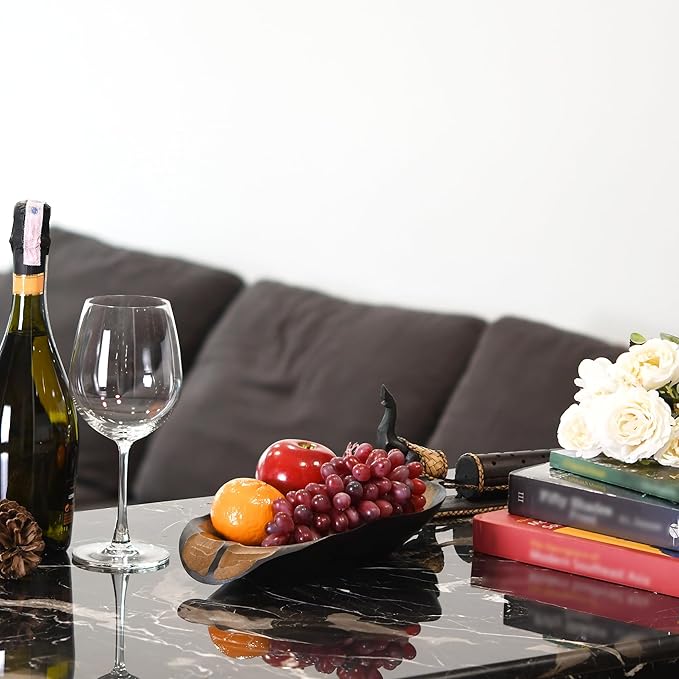 AeraVida Nature Inspired Handcarved Curvy Leaf Shaped 2-Tone Stained Wooden Serving Bowl or Dish for Tropical Chic Home Décor & Kitchen Accessories
