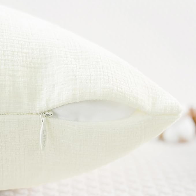 CaliTime Throw Pillow Covers Decorative 20 X 20 Inches Pack of 2 Cozy Chenille Cushion Cases for Couch Sofa Bed Living Room Home Cream