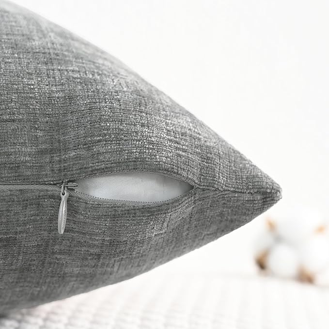 CaliTime Throw Pillow Covers Decorative 12 X 20 Inches Pack of 2 Cozy Chenille Cushion Cases for Couch Sofa Bed Living Room Home Medium Grey