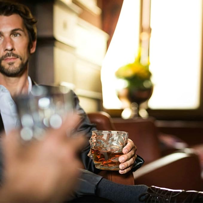 - 【Gift for Whiskey Lovers】Unique whiskey glasses set of 4, the best birthday gift. These lowball glasses also make a perfect gift for anyone who enjoys drinking whiskey, scotch, brandy, vodka, old fashioneds, gin and tonics, beer or wine. These rock glasses can make great gifts for weddings, anniversaries, bachelorette parties, Mother's Day, Father's Day, engagements, New Year's or Christmas.