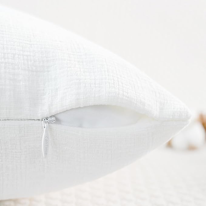 CaliTime Throw Pillow Covers Decorative 12 X 20 Inches Pack of 2 Cozy Chenille Cushion Cases for Couch Sofa Bed Living Room Home True White