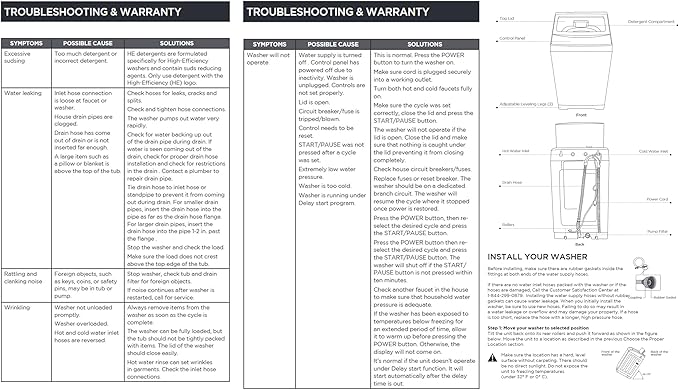 - DESIGNED FOR MOBILITY— This fantastic portable clothes washer machine can easily be transported from room to room thanks to two rollers, two side handles, and adjustable leveling legs. Also included with our compact washer is a connector adaptor, water supply hose, and drain hose.