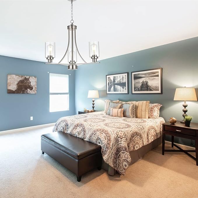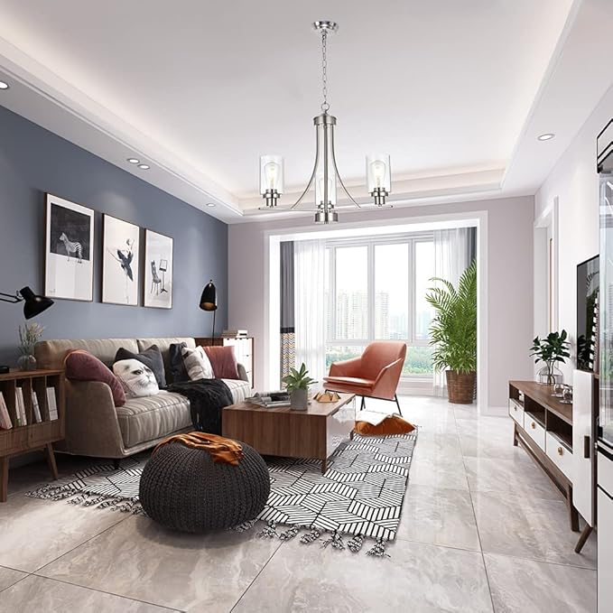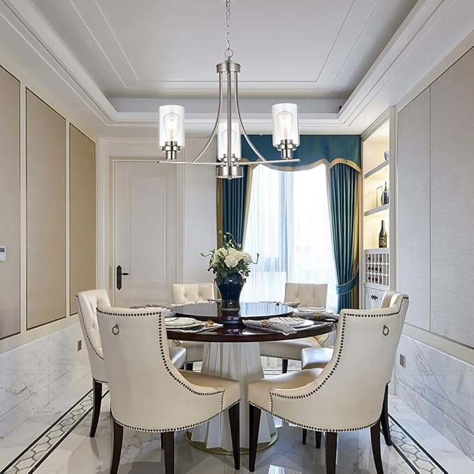 - 💠3 Light Modern Glass Chandelier: This rustic kitchen dining room chandelier with high clear glass shades,it is an elegant update for traditional and modern homes alike.It's the perfect light fixture to install in kitchen, island, dining room,living room,foyers ,hallway,bedroom,coffee bar, lobby, restaurant and any space you like.