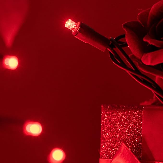 - Vibrant Red Glow ☀ Featuring 200 red 5mm LED bulbs, with 4-inch spacing, this string light creates a cozy and inviting atmosphere with its vibrant red glow. The wide angle bulbs feature multi-angle light source technology, providing a wide and even distribution of light. The independent light heads allow the light to diverge at multiple angles, ensuring that no corner of your Christmas tree or garden goes unnoticed.