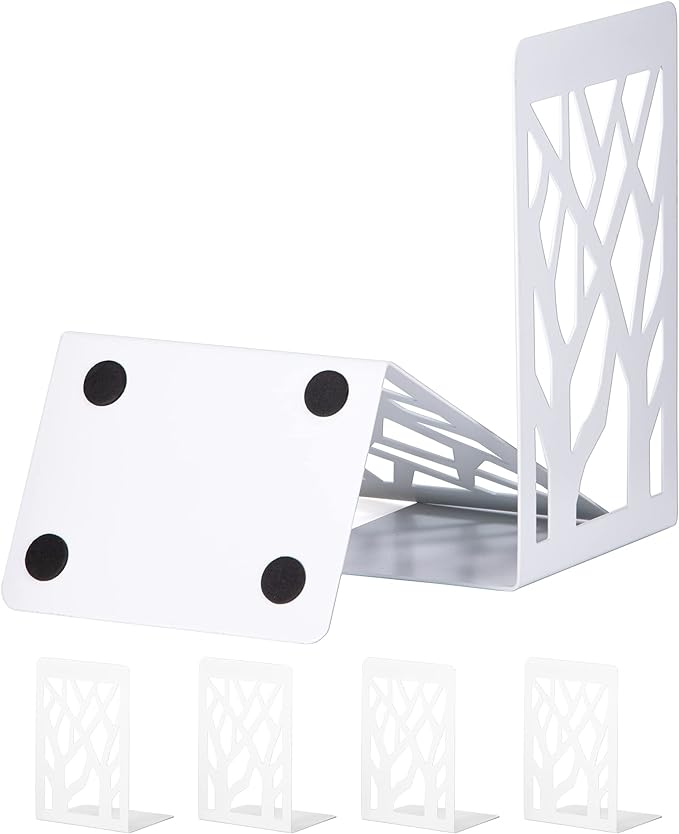 Book Ends, Bookends, Bookends for Shelves, Bookend, Book Ends for Heavy Books, White Metal Book Shelf Holder Home Decorative, Book Stoppers for Shelves, Bookend Supports 3 Pair