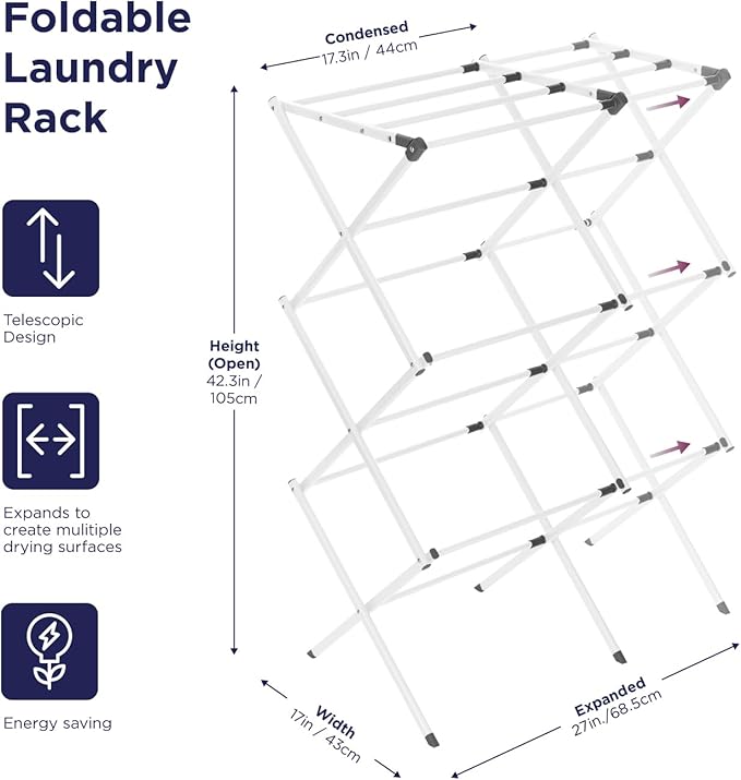 - FOLDABLE DRYING RACK: Collapsible drying rack for air-drying clothes and saving electricity consumption. The drying rack keeps items hanging neatly together and placed.