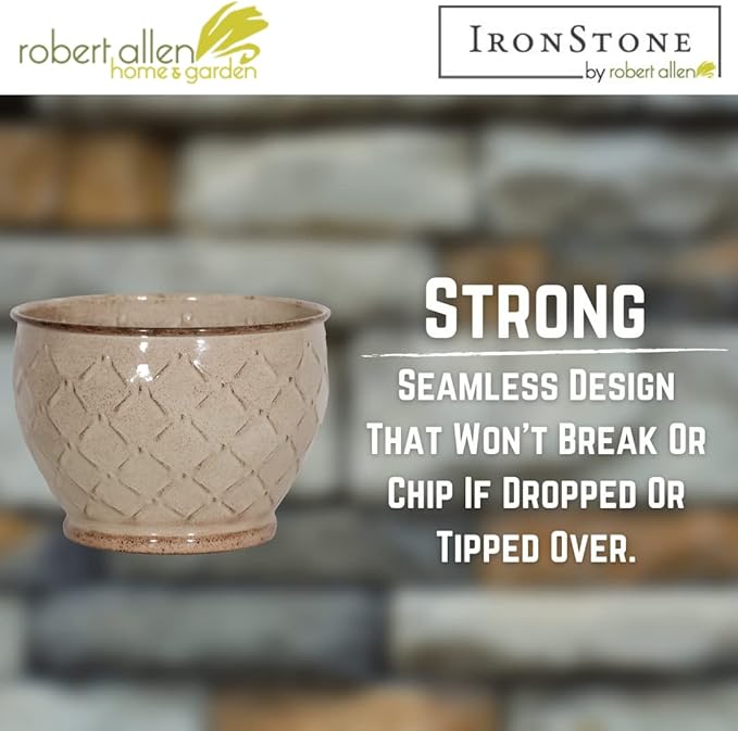 - -DRAINAGE – Contains a removable drain plug. Each IronStone planter comes with a drain plug that proves very useful whether inside or out during the changing seasons.