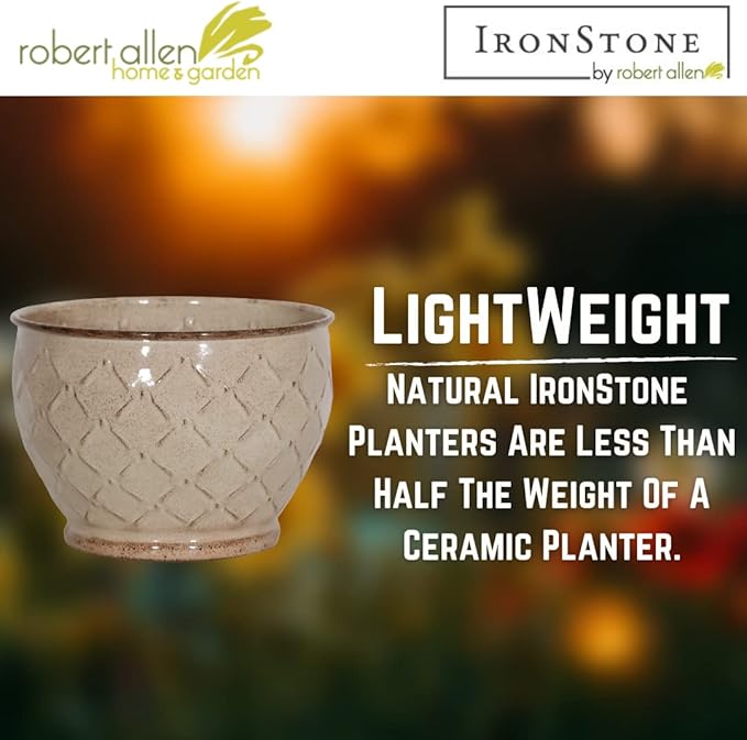 - -STYLE – Lattice Classic planters from the Gateway Collection are premium Ironstone spun planters with a basket weave design and high-gloss finish. They are available in 4 sizes to fit any of your indoor/outdoor planting needs.