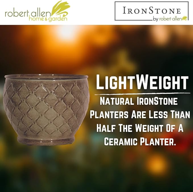 - -STYLE – Lattice Classic planters from the Gateway Collection are premium Ironstone spun planters with a basket weave design and high-gloss finish. They are available in 4 sizes to fit any of your indoor/outdoor planting needs.