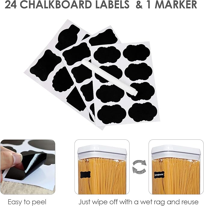 - 24 Reusable Labels----These labels will help you never confuse flour with powdered sugar or baking powder with baking soda. They are reusable, you can switch contents whenever you need.
