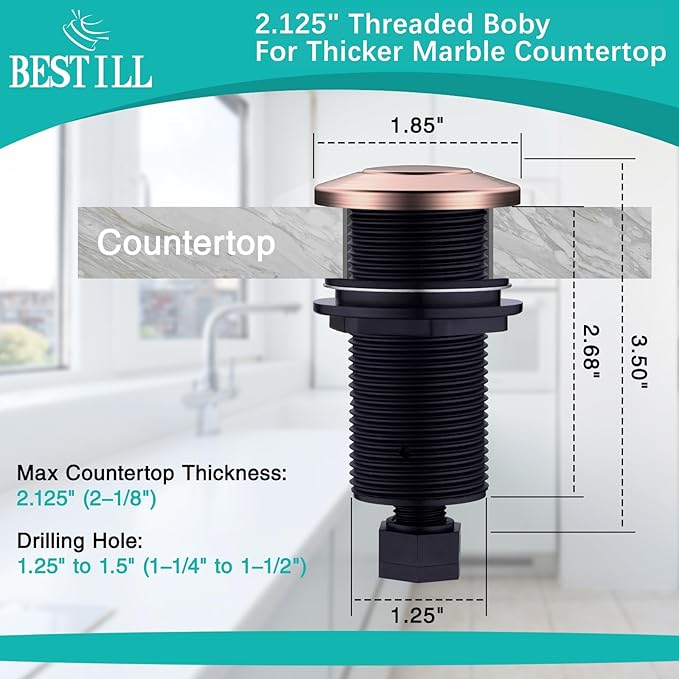 - EASY TO INSTALL - Garbage Disposal Switch Button can be easily mounted on any countertop or sinktop by drilling a 1-3/8-inch diameter hole. 3-inch thread plunger is not only for stainless steel sink top, but also for thick counter top like granite, marble, quartz, wooden and more.