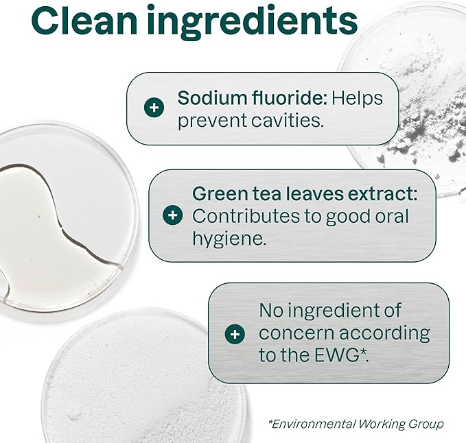 - CLEAN FORMULA: This EWG Verified toothpaste contains fluoride and is free from SLS, dyes, artificial sweeteners, and artificial flavors, for a worry-free experience.