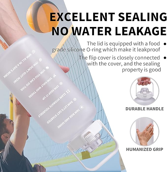 - đȘăMotivational Quote & Time Markeră With time markers and a unique motivational statement on it, the big gallon water bottle with the tracker is the best choice of reminding you to stay motivated to drink enough water daily. It is important and easy for achieving healthy fitness goals including weight loss, muscle gain, keep hydrated and healthy.