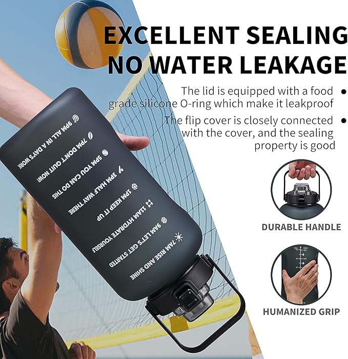 - đȘăMotivational Quote & Time MarkerăThe 128 oz large fitness water bottle jug with straw is with time markers to drink and unique motivational measurement statements on it, the big gallon water bottle with the tracker is the best choice of reminding you to stay motivated to drink enough water daily. It is important and easy for achieving healthy fitness goals including weight loss, muscle gain, keep hydrated and healthy with the aqua bottle.