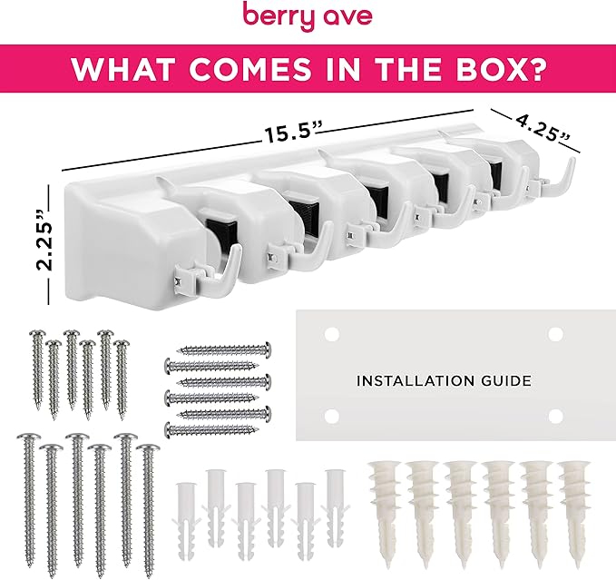 - NO SLIDE, NO MESS – Each commercial grade broom hanger has a 35 pound holding capacity. Thanks to the spring loaded, double rubber gripped slots, the Berry Ave utility hooks can hold anything from wet mops and dirty rakes to baseball bats, without any annoying slipping.