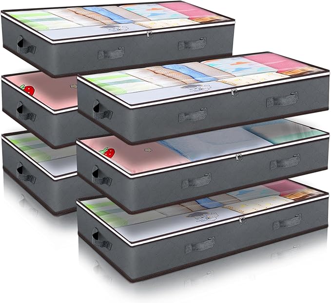 90L Under Bed Storage Containers, 6 Pack Underbed Closet Storage Organizer System, Moving Bags with Clear Window and Reinforced Handles for Bedding Pillows Blanket Clothes Wardrobe Bedroom