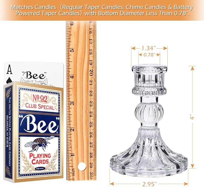 - ❤️Candlestick Holders Set -- Universal Taper Size: Top inner diameter 0.78'', bottom diameter is 3.15''x 4''H. [NOTE]You wanna candles stands straight? Melt the bottoms of the candlesticks into the holder and hold it in place for 10 sec!