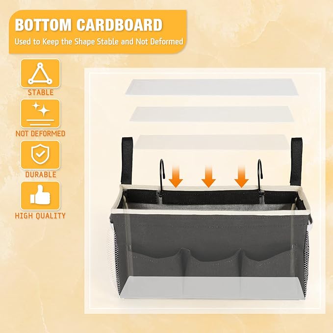 - 【Strong Bearing Capacity】In addition to the metal hook, the bedside caddy also added adjustable straps on both sides to help the bedside organizer to be additionally fixed in place, enduring enough to bear heavy weight and prevent sagging.