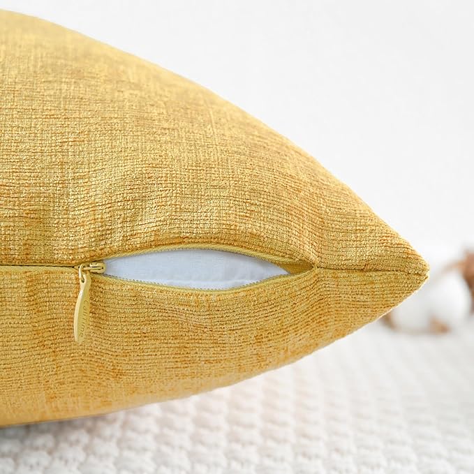 CaliTime Throw Pillow Covers Decorative 24 X 24 Inches Pack of 2 Cozy Chenille Cushion Cases for Couch Sofa Bed Living Room Home Gold
