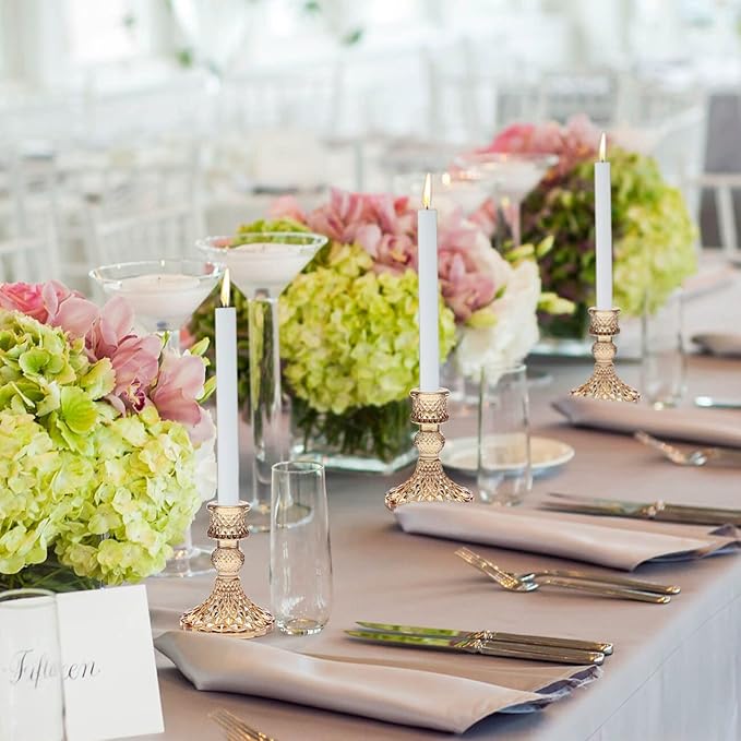 Candlestick Holders Set, 12Pcs 4" H Taper Candle Holders Bulk, Glass Candle Holders for Wedding, Festival, Party & Windowsill Decor, Gold