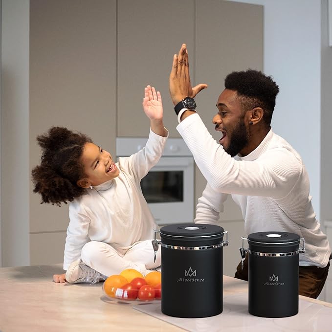 - 【Food grade 304 stainless steel material】The Miscedence coffee canister is made of food grade 304 stainless steel, which is safe, sturdy and not rusty. It has a beautiful design that makes your kitchen look stylish and modern.