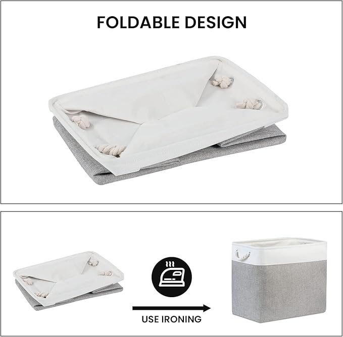 - [Foldable Baskets Set] Simply fold the canvas basket down flat for space-saving storage when not in use or when needing to transport. The basket stays filled for a while and then stays standing. If you mind the creases, you can use an iron to iron the creases in the basket. If you do not use an iron, the creases will slowly disappear as you store your items.