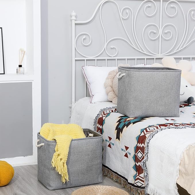 - [Cotton Rope Handles&Premium Fabric] Lightweight storage baskets with cotton rope handles, easy to move and more comfortable grip. Sturdy soft handles on both sides are convenient to retrieve from shelves. These storage baskets are made of durable fabric which is strong and lightweight