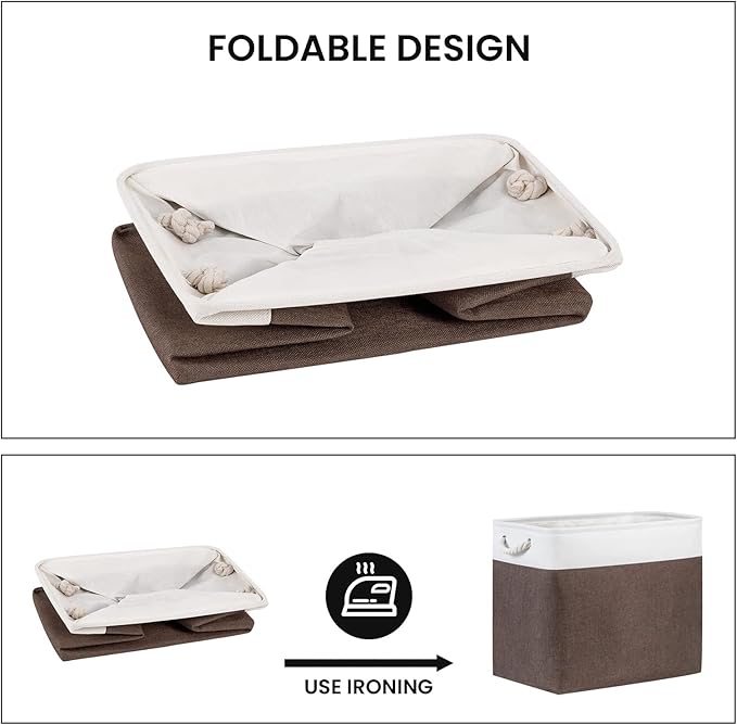 - [Foldable Baskets Set] Simply fold the canvas basket down flat for space-saving storage when not in use or when needing to transport. The basket stays filled for a while and then stays standing. If you mind the creases, you can use an iron to iron the creases in the basket. If you do not use an iron, the creases will slowly disappear as you store your items.
