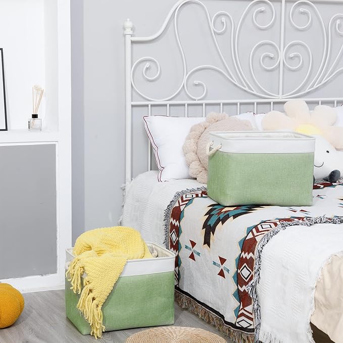 Bidtakay Baskets Fabric Closet Organizer Set of 2 Green Collapsible Storage Bins with Handles 16x12x12 in Large Decorative Tall Baskets for Shelves Nursery Baby Toys Storage Living Room Decor