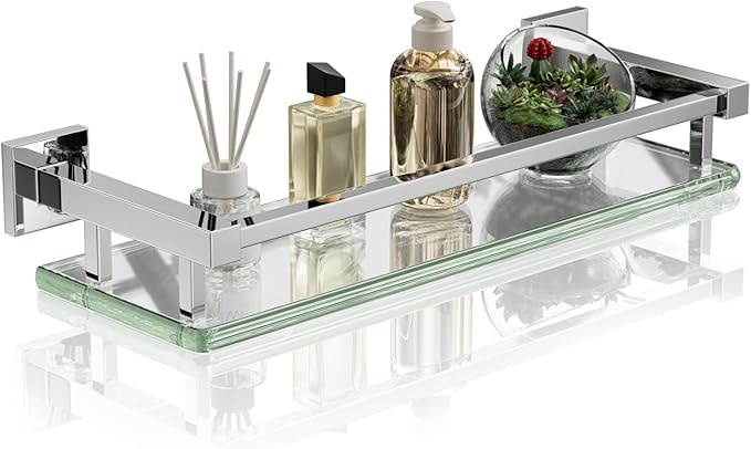 - TEMPERED GLASS:Our glass shelves are made with ultra-strong 8mm tempered glass and SUS304 stainless steel, ensuring a weight capacity that far exceeds standard shelves for reliable support