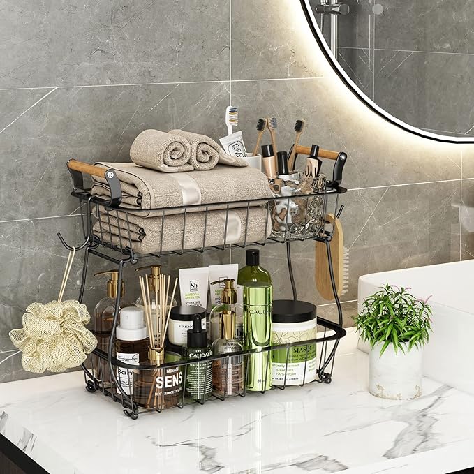 - Multifunctional Storage Rack: A functional helper to neatly store not only your fruits and veggies, but also bread, snacks, spice bottles or toiletries, toys, tools and more. Use it in the kitchen, pantry or bathroom, compact enough to fit on the countertop, dining table or under cabinet.