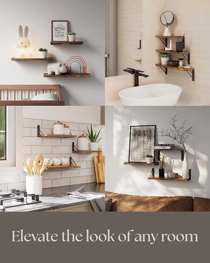 - *Rustic Aesthetic**: These rustic brown floating wall shelves add a touch of rustic elegance to your wall decor, making them perfect for modern or classic interiors
