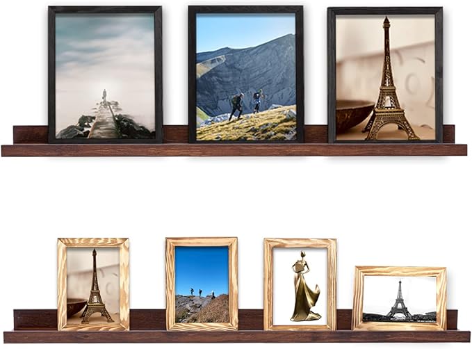 - Versatile and Multi-Scene: AZSKY floating shelves are designed to be functional. Perfect for displaying your photos, artwork, plants, trophies, these wall ledge shelves add life and a personal touch to your interior. Our floating picture shelf is perfect for any interior space, such as your kitchen, living room, bathroom, bedroom or even office.
