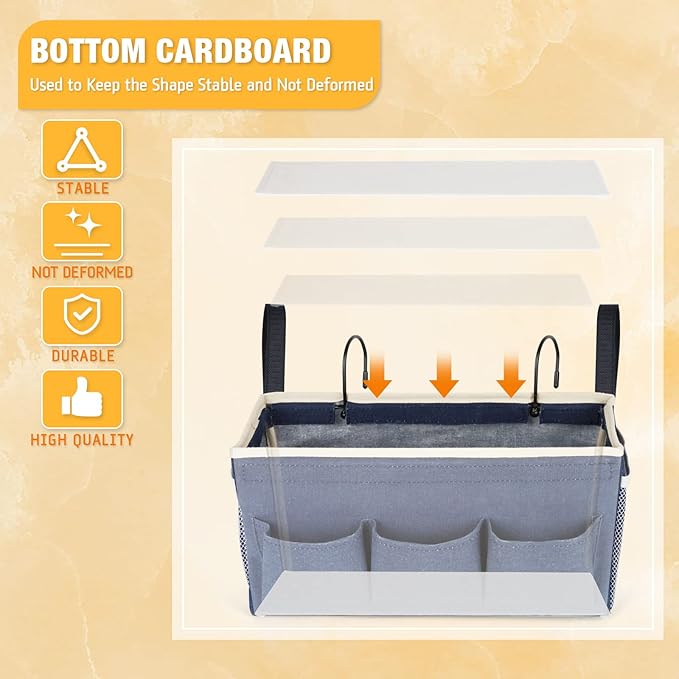 - 【Wide Application】Keep your items close to you for convenient access. The bunk bed storage caddy stores all your belongings together, such as laptop, mobile phones, books, water bottles, data cables, etc; Suitable for home school dorm bunk beds, hospital bed rails, crib rails or camping.