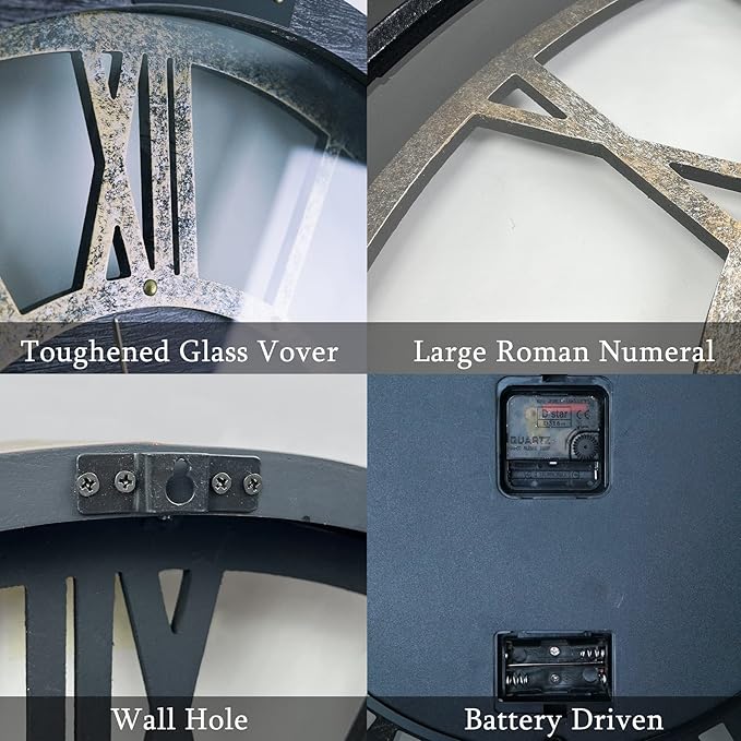 - 🕞Real Rotating Gears: The exposed gears on this large wall clock are real and rotate independently of the pointers. With a dust proof glass cover and battery powered operation, the gears rotate almost silently, providing a unique and dynamic way to experience time.