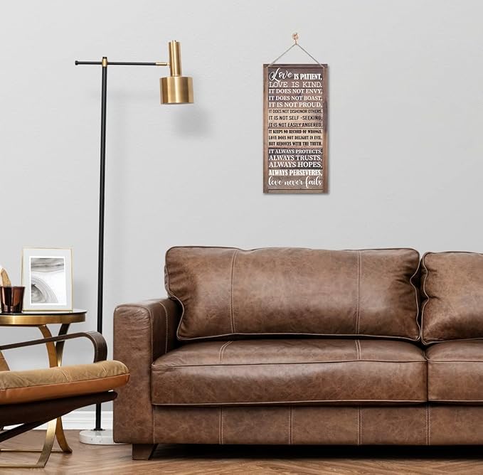 1 Corinthians 13:4-8 Inspirational Hanging Wood Decor Sign, Printed Wood Sign, Love is Patient, Love is Kind Quote, Hanging Bible Verses Woods Wall Signs, Rustic Home Decor Signs, Christian Gift