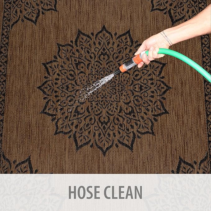 CAMILSON Outdoor Rug, 5x7 Medallion Nut Brown Black Modern Area Rugs for Indoor and Outdoor Patios, Kitchen and Hallway Mats, Washable Porch Deck Outside Carpet (Medallion Nut Brown Black, 5 x 7)