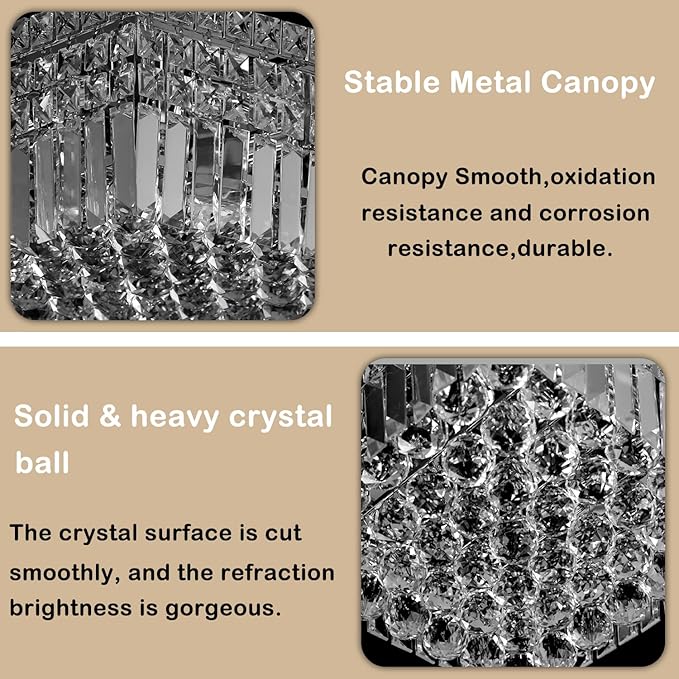- ☀Modern Base Design : Square Chandelier lampshade,consisting of numerous clear crystal beads and silver steel frame, with 4 Lights holder, creating an elegant and luxurious atmosphere. Crystal ceiling light suits for Hallway, Living Room, Bedroom, Kids Room, Kitchen, Bar, Aisle, Hotel, Restaurant, Pass-way and more.