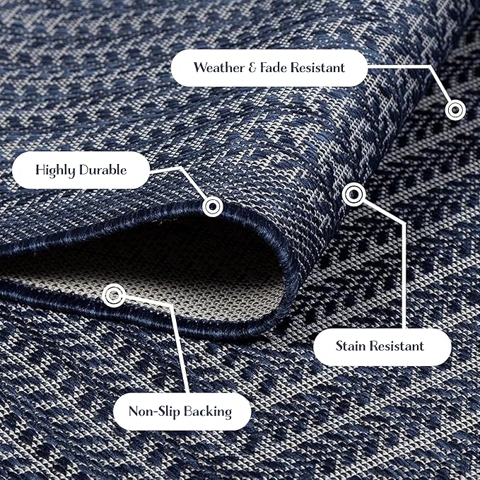Adiva Rugs Outdoor Indoor Area Rug, Weather Resistant, Easy to Clean, Stain Resistant Floor Mat for Dining Room, Backyard, Deck, Patio (Navy Weiss, 2' x 3')
