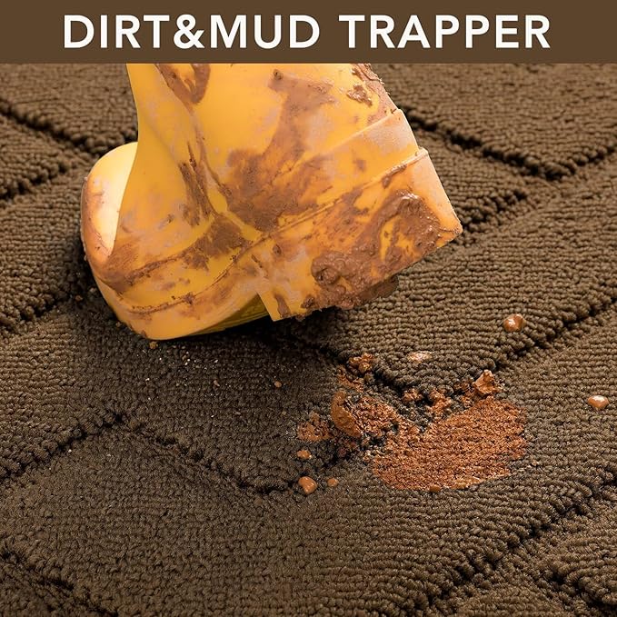 - Durable & NON-SLIP: Our Indoor Doormat is made of high-quality absorbent polypropylene fabric, uses double layer technology which absorb moisture and dirt from shoes quickly, makes your floors clean and dry. And the non-skid TPR rubber backing won't scuff floors, perfect for both indoor and outdoor use.