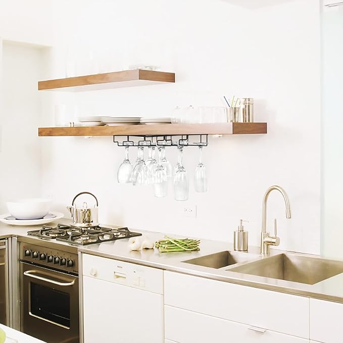 - 【EASY TO INSTALL】Each glass rack with holes,comes with the mounting hardware.When you are installing this wine glass rack, you only need to use a screwdriver to screw the provided screws into the wood of the cabinet. No need to drill holes under the cabinet , it can be easily installed in a few minutes