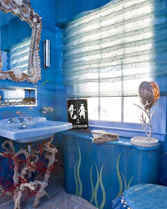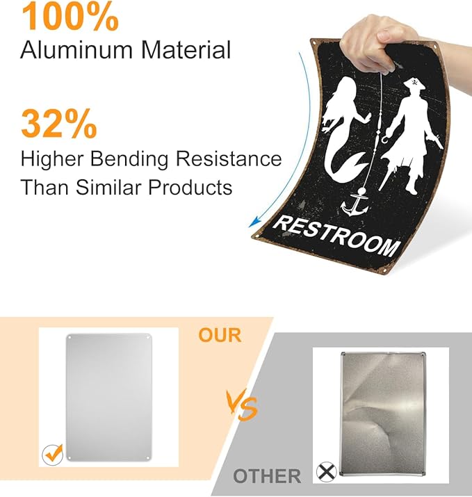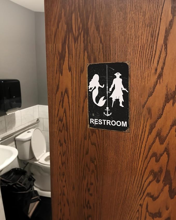 ALKB Nautical Themed Vintage Restroom Door Sign Fun Mermaid and Pirate Sign Suitable for Ocean, Beach, Ship Themed Wall Decor 8x12 Inch