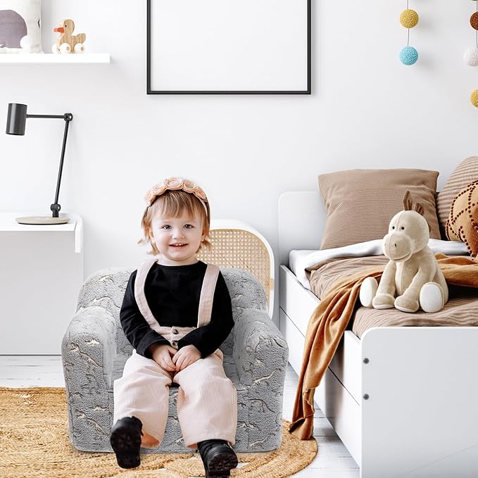ALIMORDEN Kids Ultra-Soft Snuggle Foam Filled Chair, Glow-in-The-Dark Dinosaurs Fossil Pattern Toddler Cuddly Sherpa Reading Couch for Boys and Girls
