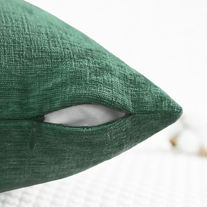 CaliTime Throw Pillow Covers Decorative 16 X 16 Inches Pack of 2 Cozy Chenille Cushion Cases for Couch Sofa Bed Living Room Home Dark Green