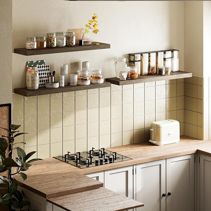 - LIFETIME WARRANTY: We strive to offer the 100% satisfaction for all our customers and provide quality assurance service and long-term installation guidance for our products; Contact us whenever you have any questions before and after your purchase; If you’re dissatisfied with our wide floating shelves for any reason, please be free to contact us online