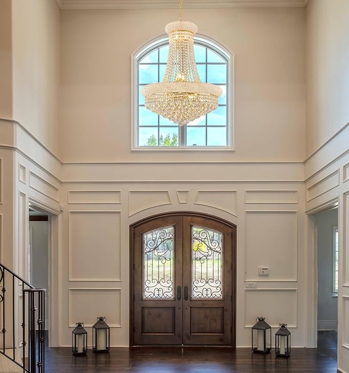 14 - Light Unique Empire Crystal Chandelier with Adjustable Chain for High Ceiling Foyer Entryway Living Room Dining Room Bedroom Gold Finish
