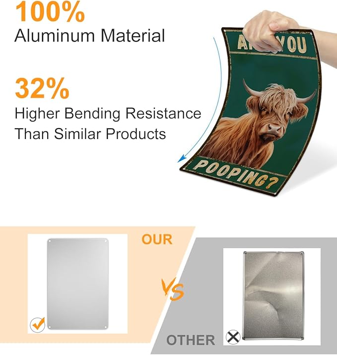 ALKB Funny Highland Cow Are You Pooping Metal Signs Vintage Farmhouse Bathroom Wall Decor Highland Cow Lovers Gift 8 x 12 Inch