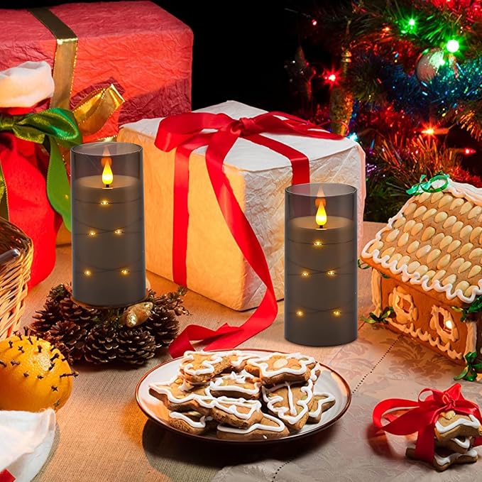 - [PERFECT DECORATION] The special star lights make these flameless pillar candles a great addition for holidays or special occasions. The ability to turn on/off the star lights at will makes them perfect for decorating your home and controlling the ambiance and mood of any occasion or environment without the hassle of traditional candles. Enjoy every moment with these LED flickering candles.