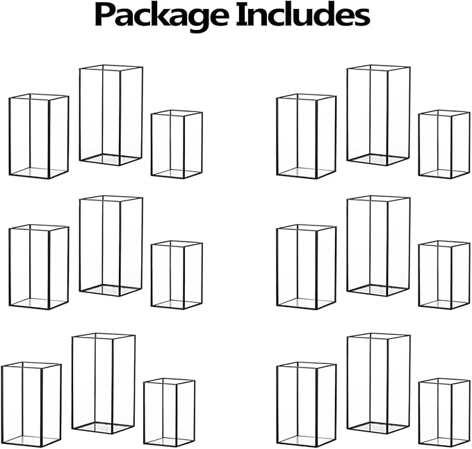 Hewory Glass Hurricane Candle Holder Set of 18, Black Large Hurricane Centerpiece for Table, Tall Floor Square Pillar Candle Holders Lantern Set for Wedding, Anniversary, Party, Fireplace, Dining Room