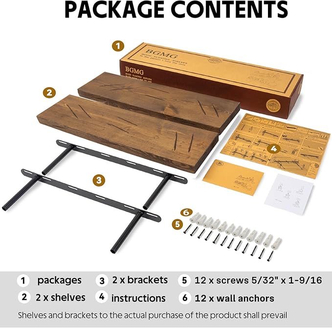 BGMG Floating Shelves 24 inch Long, Distressed,Wide Rustic Wooden Wall Shelves for Bathroom Living Room Bedroom Kitchen Farmhouse Set of 2-24x6.7x1.25 inch-Distressed Walnut